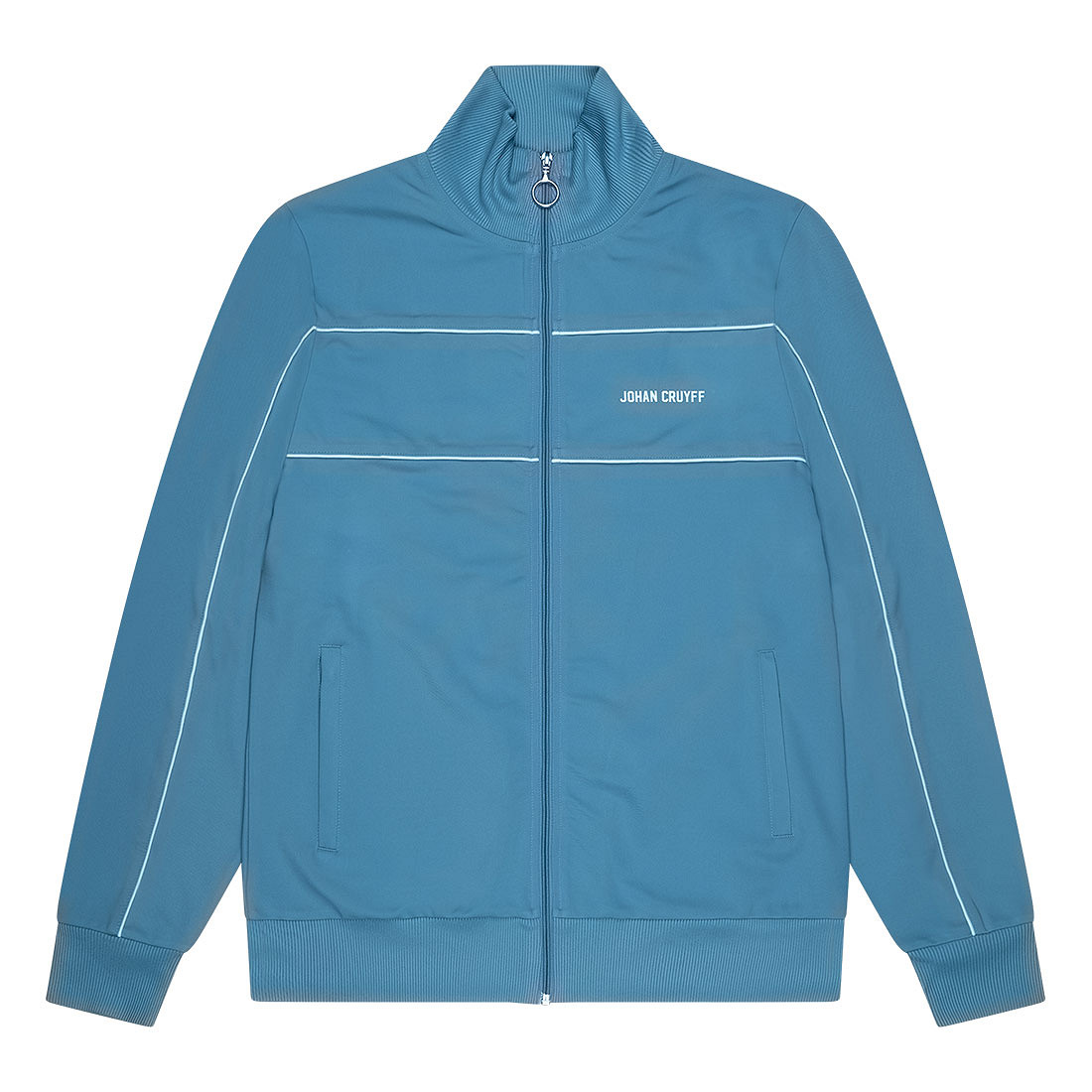 Stylish Johan Cruyff retro track jacket in blue. This premium track jacket features a relaxed fit and is designed with a strong focus on comfort and appearance. The jacket is finished in a light blue colorway and features a recognizable Johan Cruyff print on the left chest. Zippered side pockets provide added convenience.
