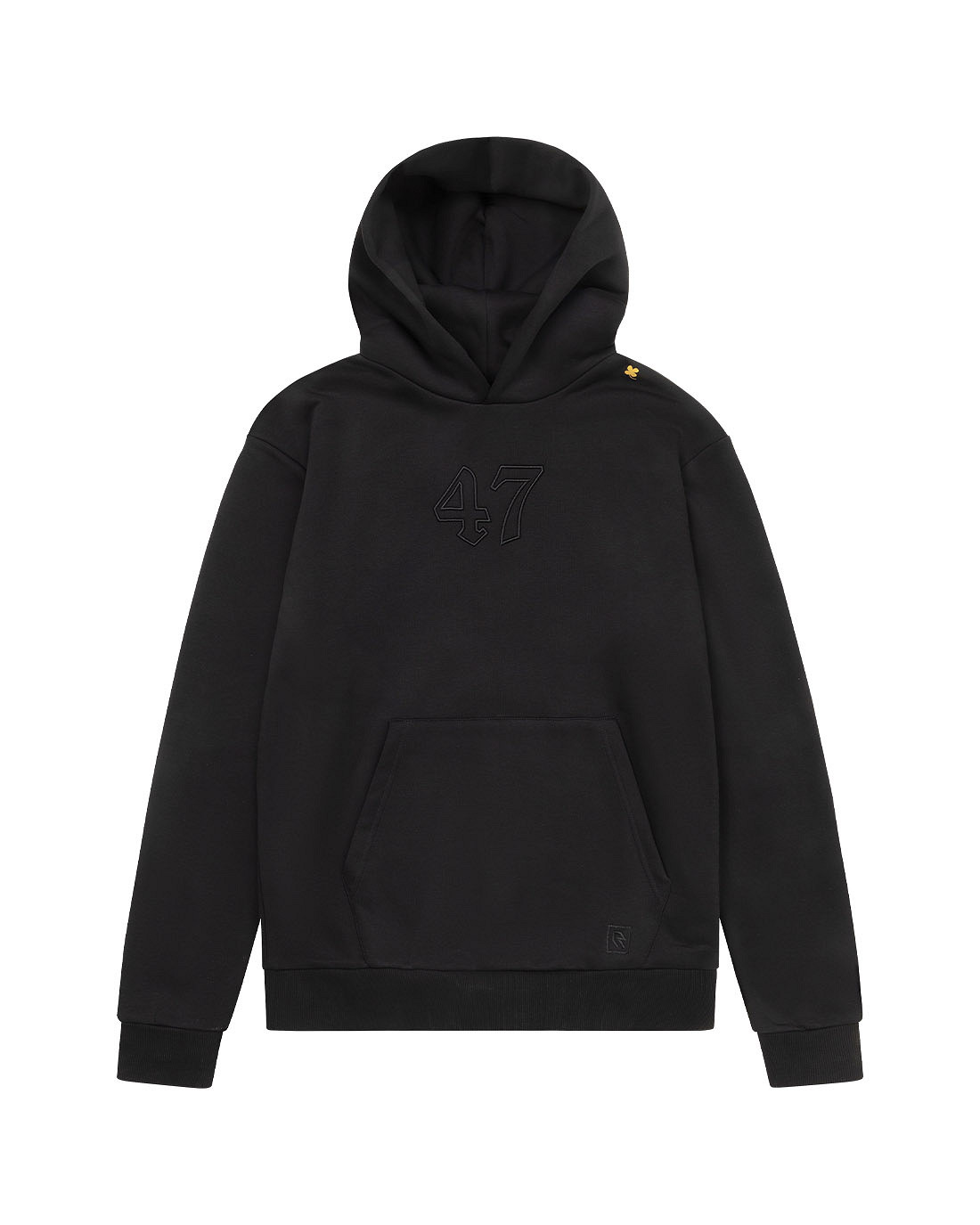 Robey Varsity hoodie in black for adults. The Robey Varsity collection combines old-school sports culture with modern street attitude. The Varsity Hoodie is made for the moments between action and rest. After training, before the game or on the go. The Hoodie offers comfort without compromise. In addition, the '47 is a nod to our roots, subtle but powerful. The number 47 is centered on the front chest. A special Robey graphic is on the back. The hoodie has an oversized fit and is therefore slightly looser. Made of 100% cotton.
